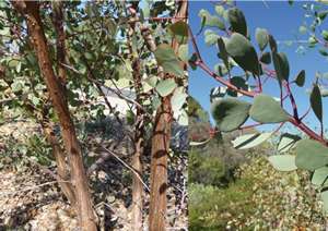 Apple Box - Attractive shade tree reaching 15 m - the broad silver juvenile leaves are suitable for cutting - pendulous long dark green adult leaves - frost resistant.