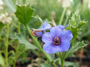 An upright hardy perennial - green linear leaves - sprays of violet blue flrs over many months - tolerant of some shade & frost. 0.3m x 1m