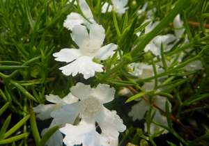 Dense rounded cushion like shrub to 0.3 m high x 0.5 m wide - attractive fine light green foliage - masses of tiny white flrs in Sp - medium frost only.