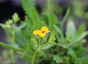 Upright perennial herb to 0.5 m - thick stems and large almost succulent green leaves - yellow flrs with reddish throats occur in Sp & Su. (Descriptive label only)