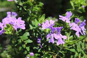 Recently discovered 2 m high mint bush from Tenterfield district - attractive fresh green foliage, the aromatic leaves shaped like tiny hands - small mauve flrs in Sp - frost resistant.