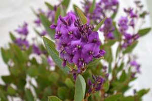Rare shrub from WA - narrow linear grey leaves - purple tubular flrs - tolerant of drought & moderate frost. 1.5m x 1.5m
